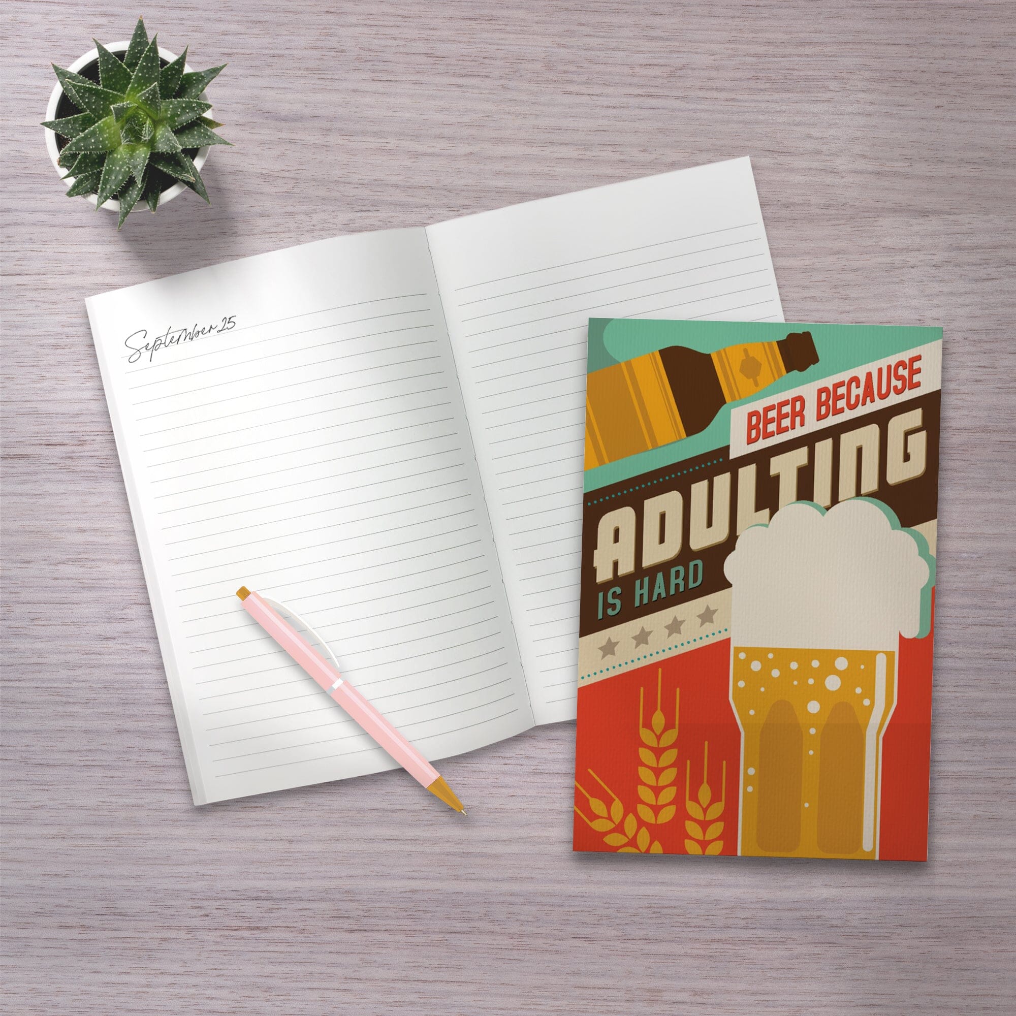 • Lined 6x9 Journal, Adulting is Hard, Beer Sentiment, Vector, Lay Flat, 193 Pages, FSC paper