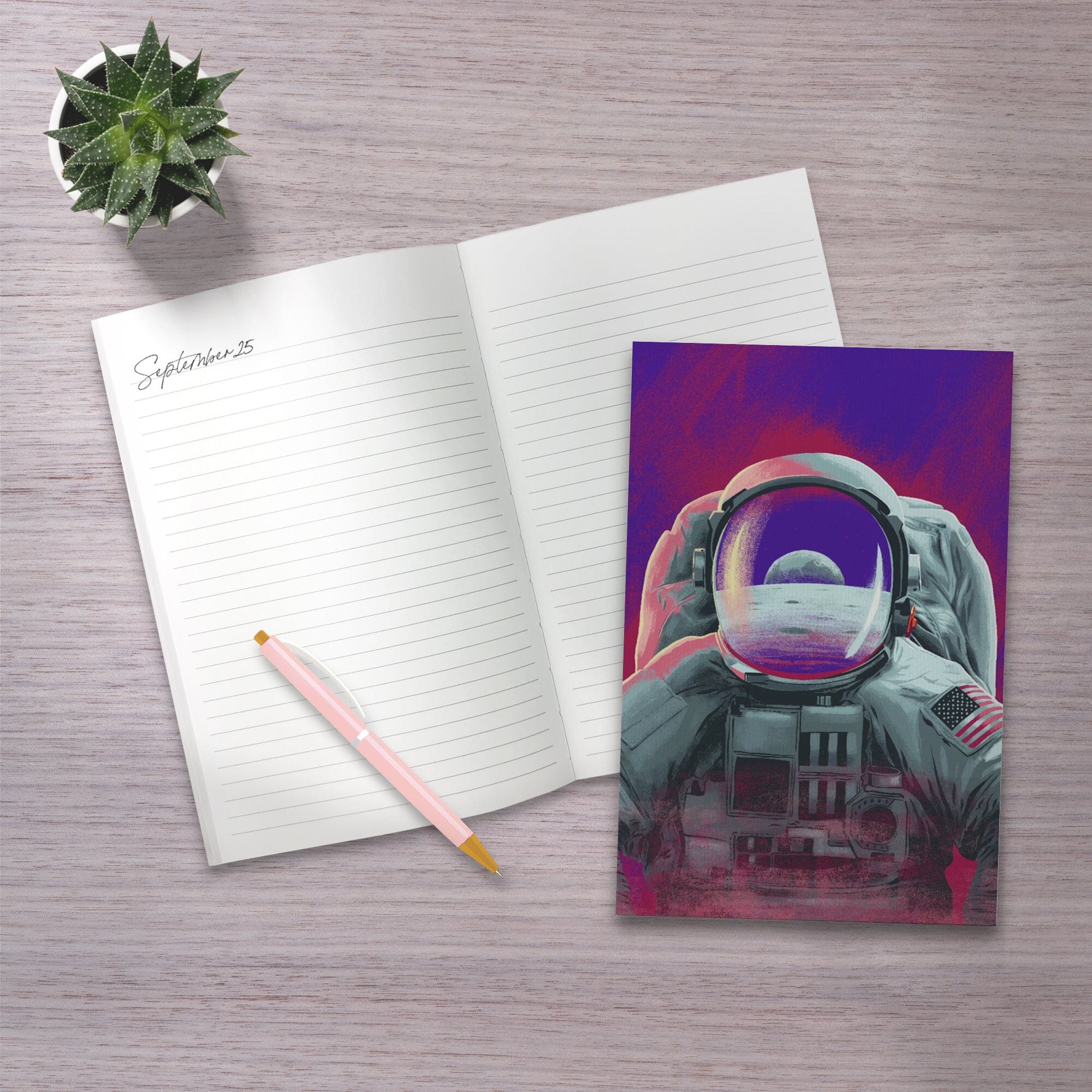 • Lined 6x9 Journal, Because, Science Collection, Astronaut, Moon Reflection, Lay Flat, 193 Pages, FSC paper