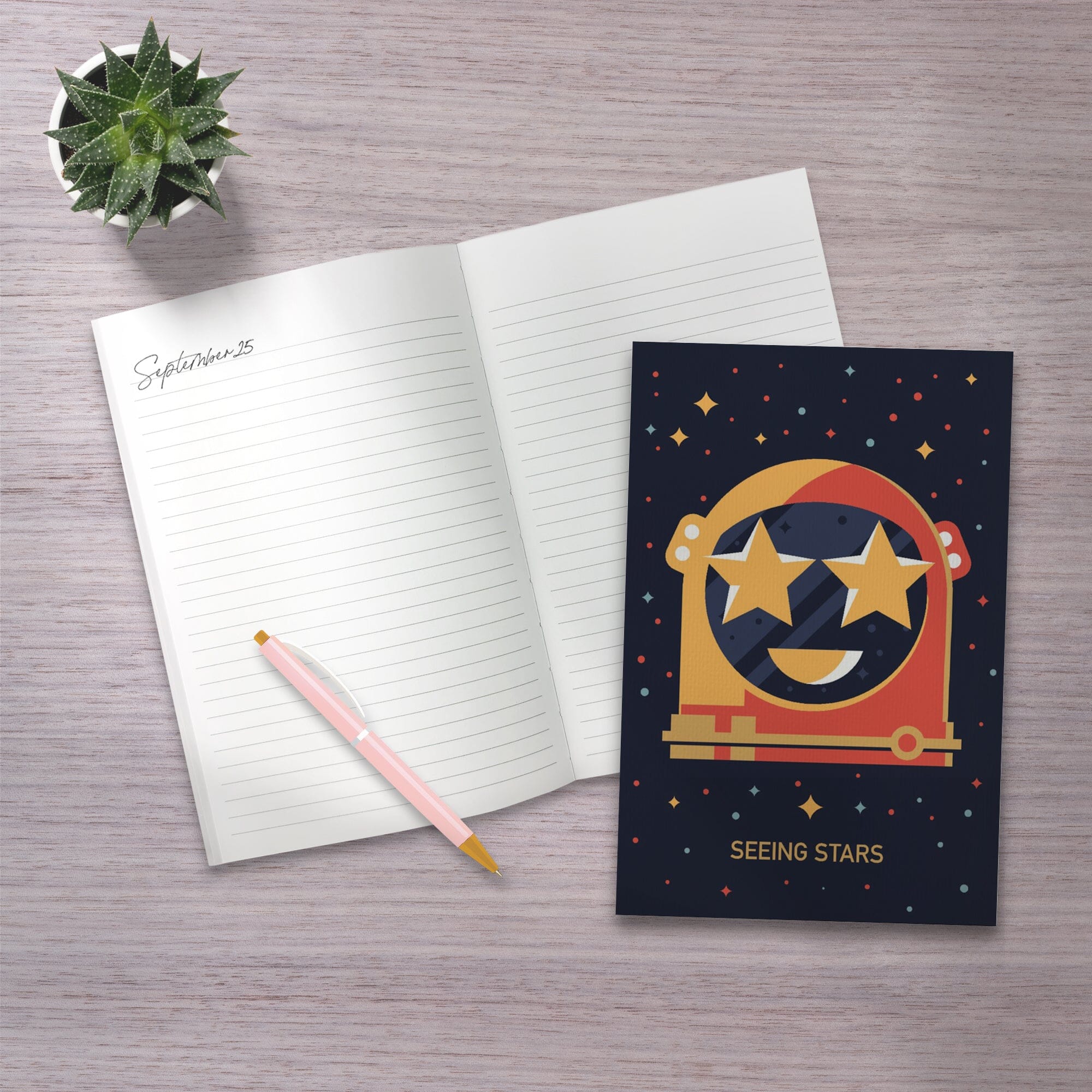 • Lined 6x9 Journal, Equations and Emojis Collection, Astronaut Helmet, Seeing Stars, Lay Flat, 193 Pages, FSC paper