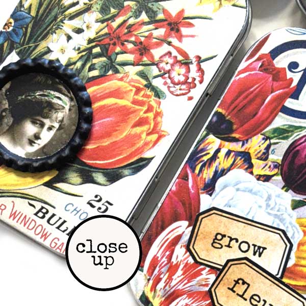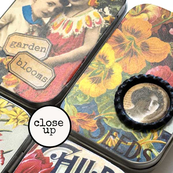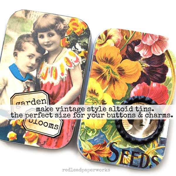 The Vintage Elements 611 In the Garden Altoid Collage Sheet has 6 designs and 19 vintage style labels for you to make. Keep your small treasures tucked away in Altoid Tins that you made!